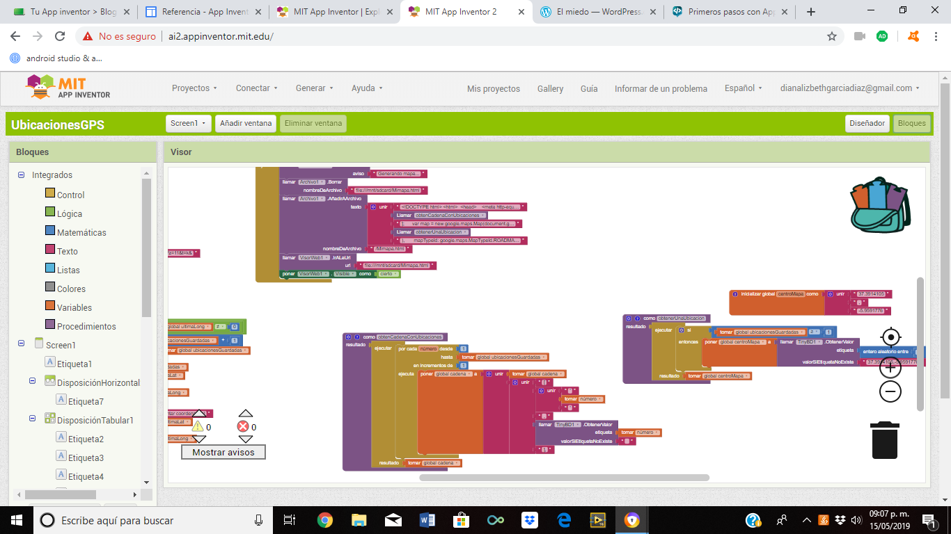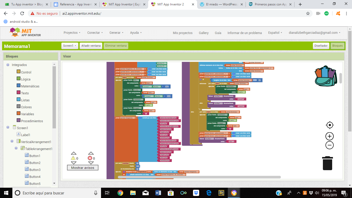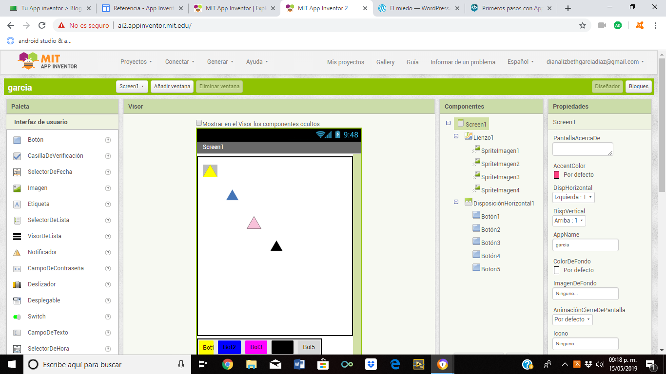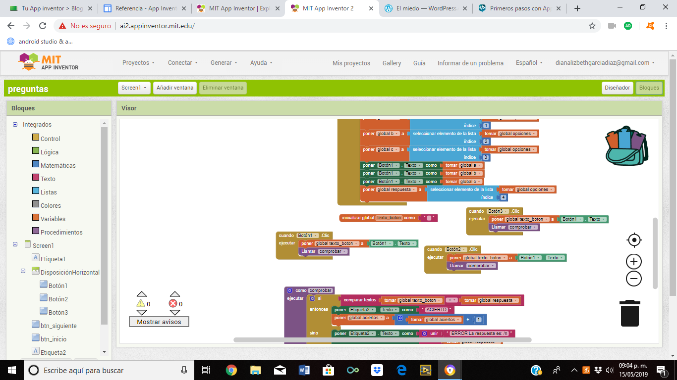 Al construir las aplicaciones para Android trabajarás con dos herramientas: App Inventor Designer y App Inventor Blocks Editor. En Designer construirás el Interfaz de Usuario, eligiendo y situando los elementos con los que interactuará el usuario y los componentes que utilizará la aplicación. En el Blocks Editor definirás el comportamiento de los componentes de tu aplicación.